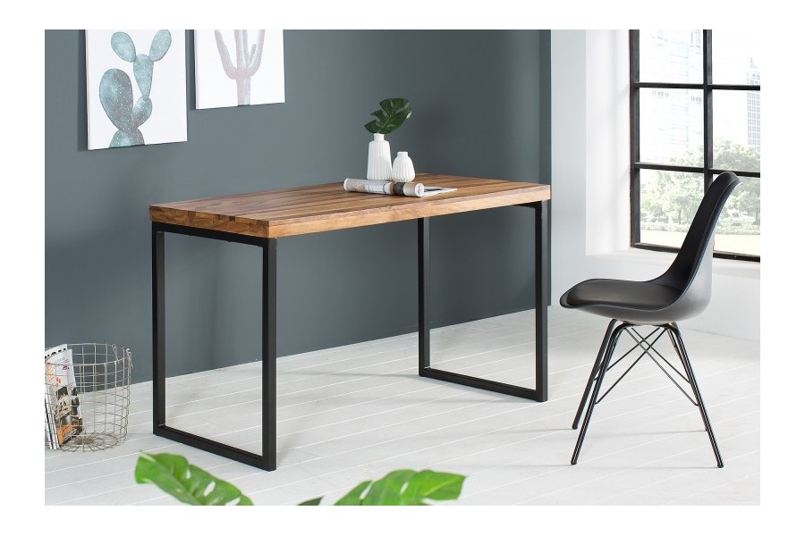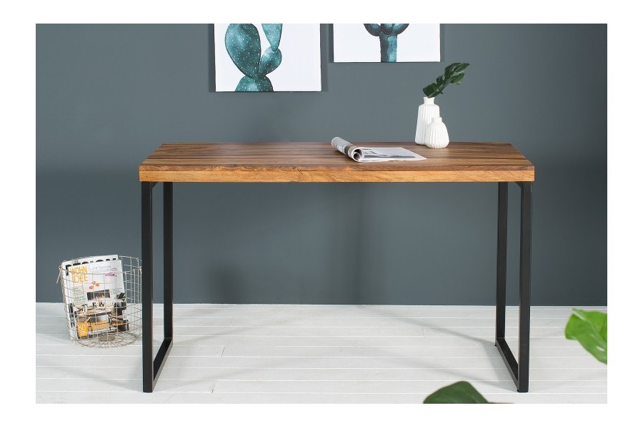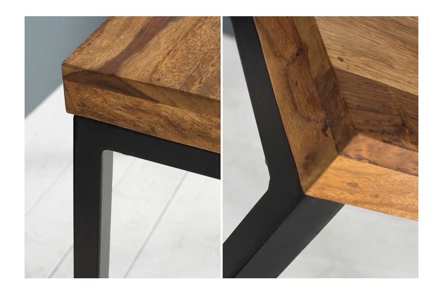 Apportez style et authenticité à votre intérieur avec cette table à manger en bois massif de Sheesham (Palissandre) 120 cm. Sa structure robuste en bois massif, son design industriel avec pieds en métal noir et sa finition naturelle en font un meuble...
