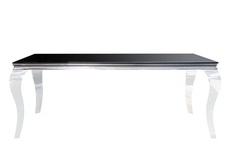 Le style baroque de cette table réalisée en verre trempé coloris argent et noir est idéale pour une salle à manger, grâce au confort de son structure et à la dimension adaptée de la table, vous aurez le plaisir de se rassembler à un repas.