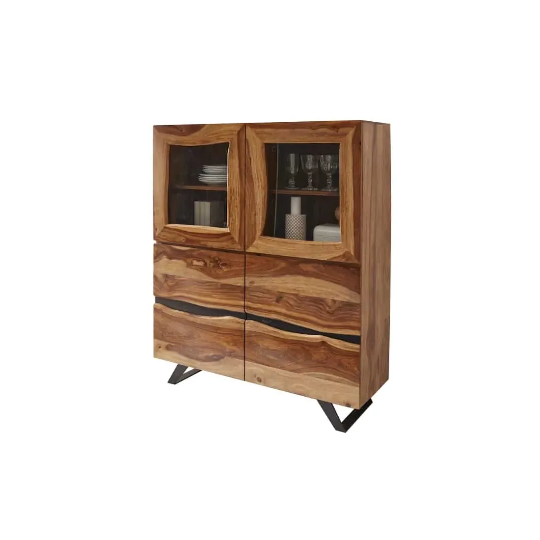 Nous vous présentons ce formidable bahut de style industriel ! Fabriqué joliment en bois de sheesham massif avec un bord d'arbre naturel avec un piètement en métal enduit de poudre coloris noir ! doté de 4 portes ce qui vous offre un espace de rangement important !