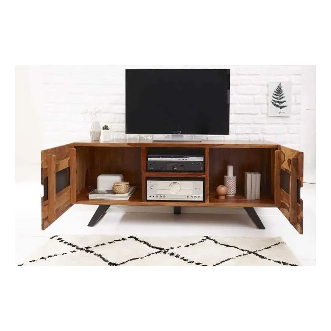 Meuble TV en bois massif de Sheesham (Palissandre) naturel 160 cm – meuble TV industriel bois naturel