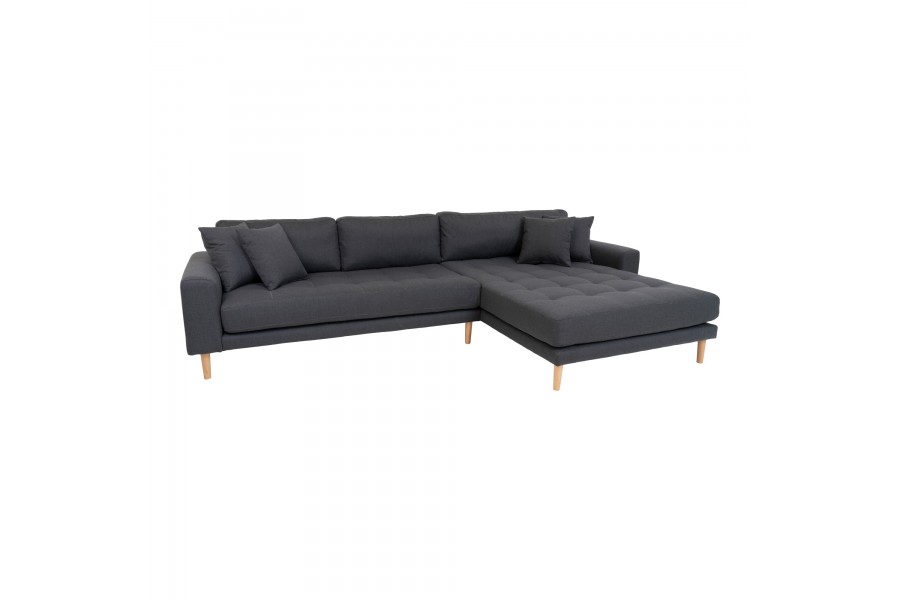 Canapé d'angle droit design coloris gris foncé en tissu avec des pieds en bois naturel
