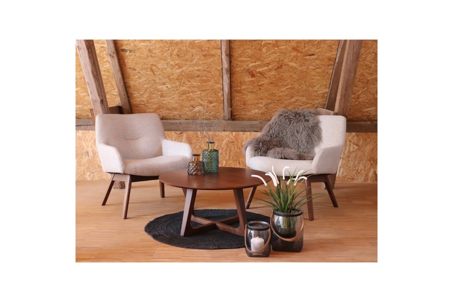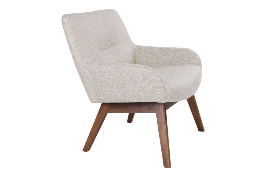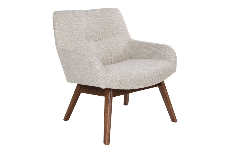 Fauteuil longue LONDON revetement tissu cooris sable avec pieds en noyer