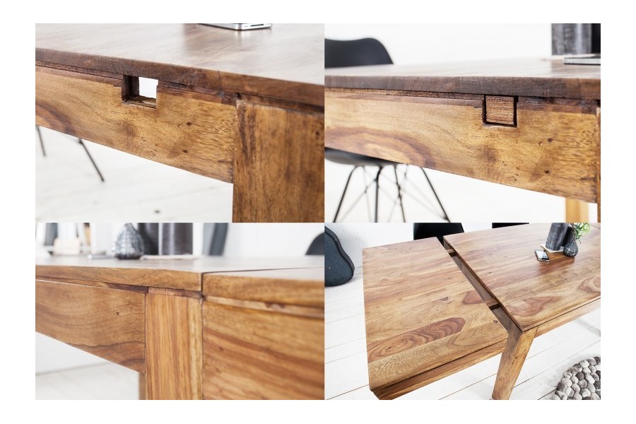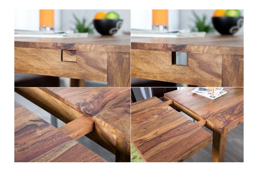 Buffet en bois massif de Sheesham (Palissandre) naturel 160 cm – finition pierre marron...