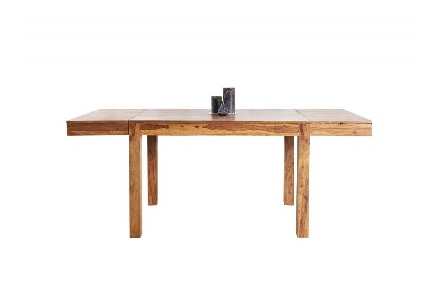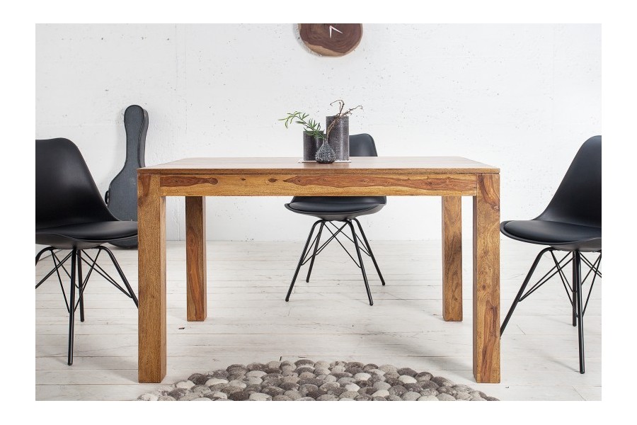 Buffet 100 % bois massif Sheesham coloris naturel, format compact 140 cm pour s'adapter à tous les salons et salles à manger. 2 portes et 3 tiroirs pour un rangement complet vaisselle, linge et objets décoratifs. Livré entièrement monté — prêt à l'emploi dès la réception.