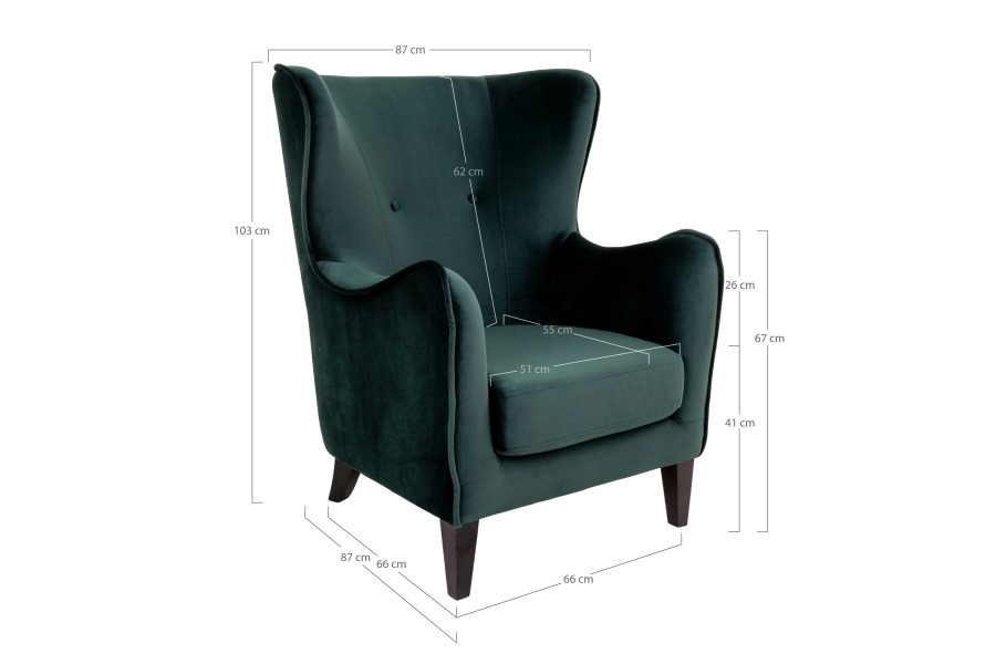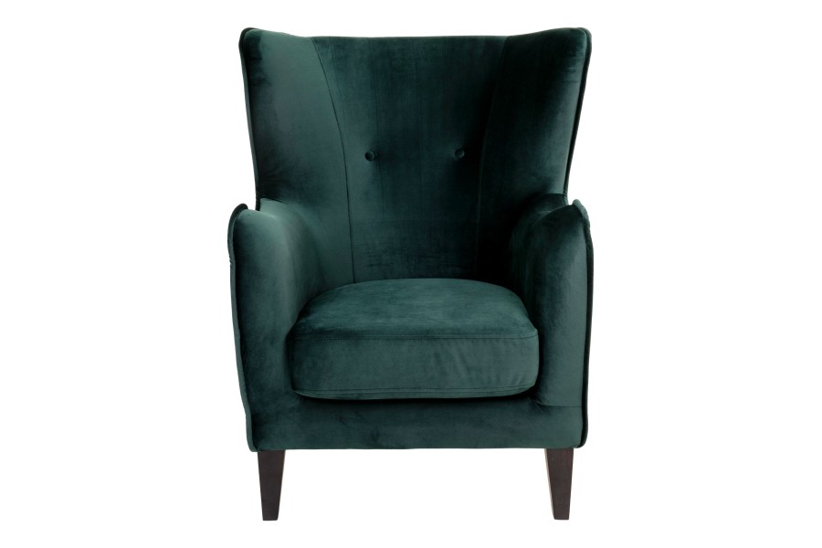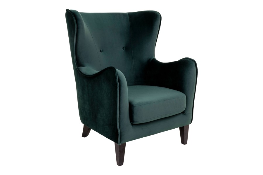 Fauteuil Compo au design classique revetement tissu couleur vert, pietement en bois hêtre