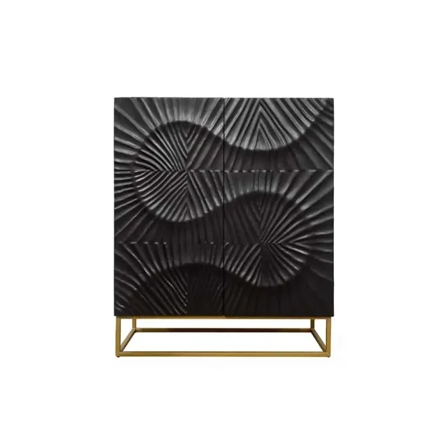 Buffet haut SCORPION 120 cm – Bois massif de manguier noir sculpté à la main, piètement doré