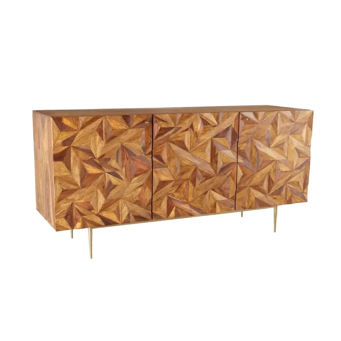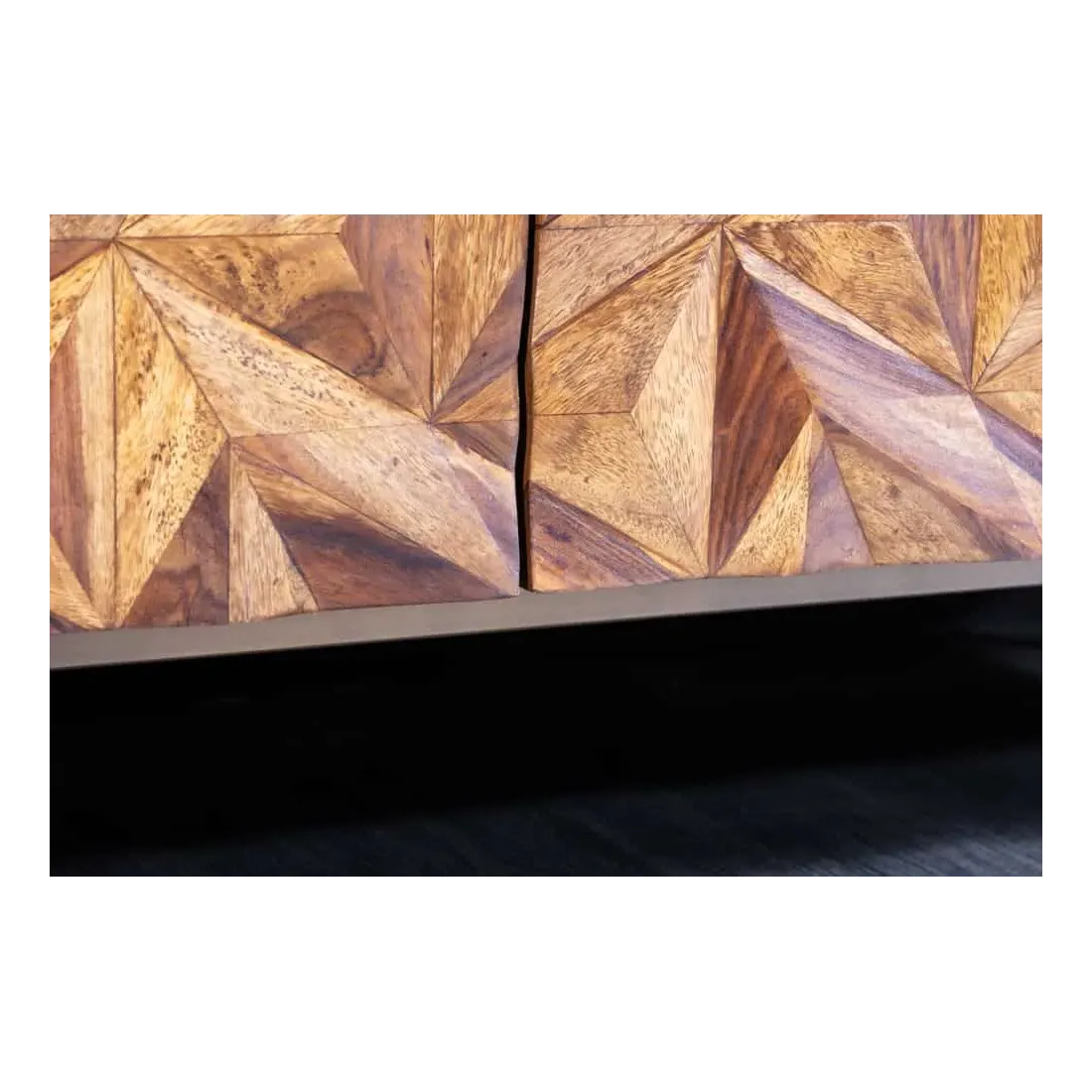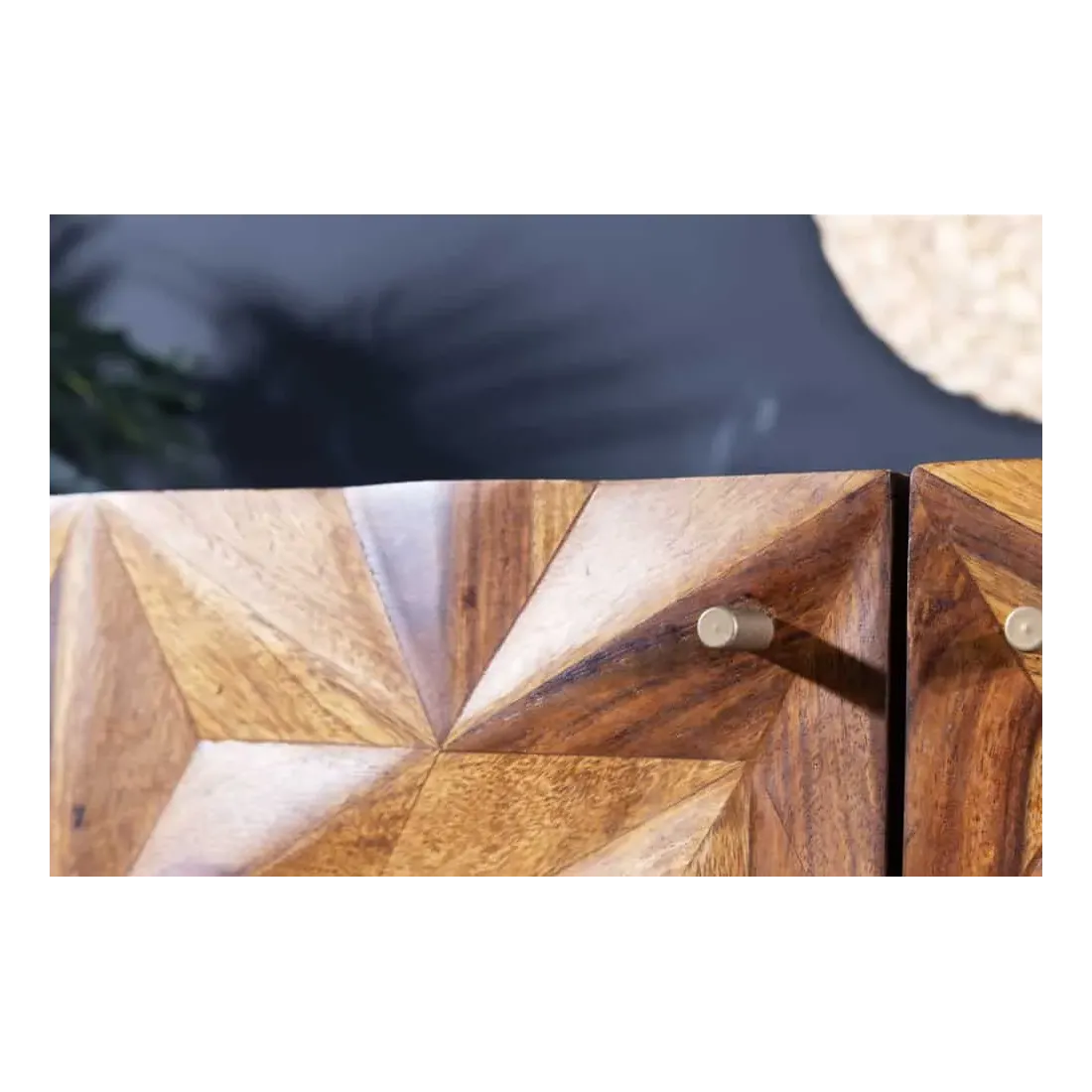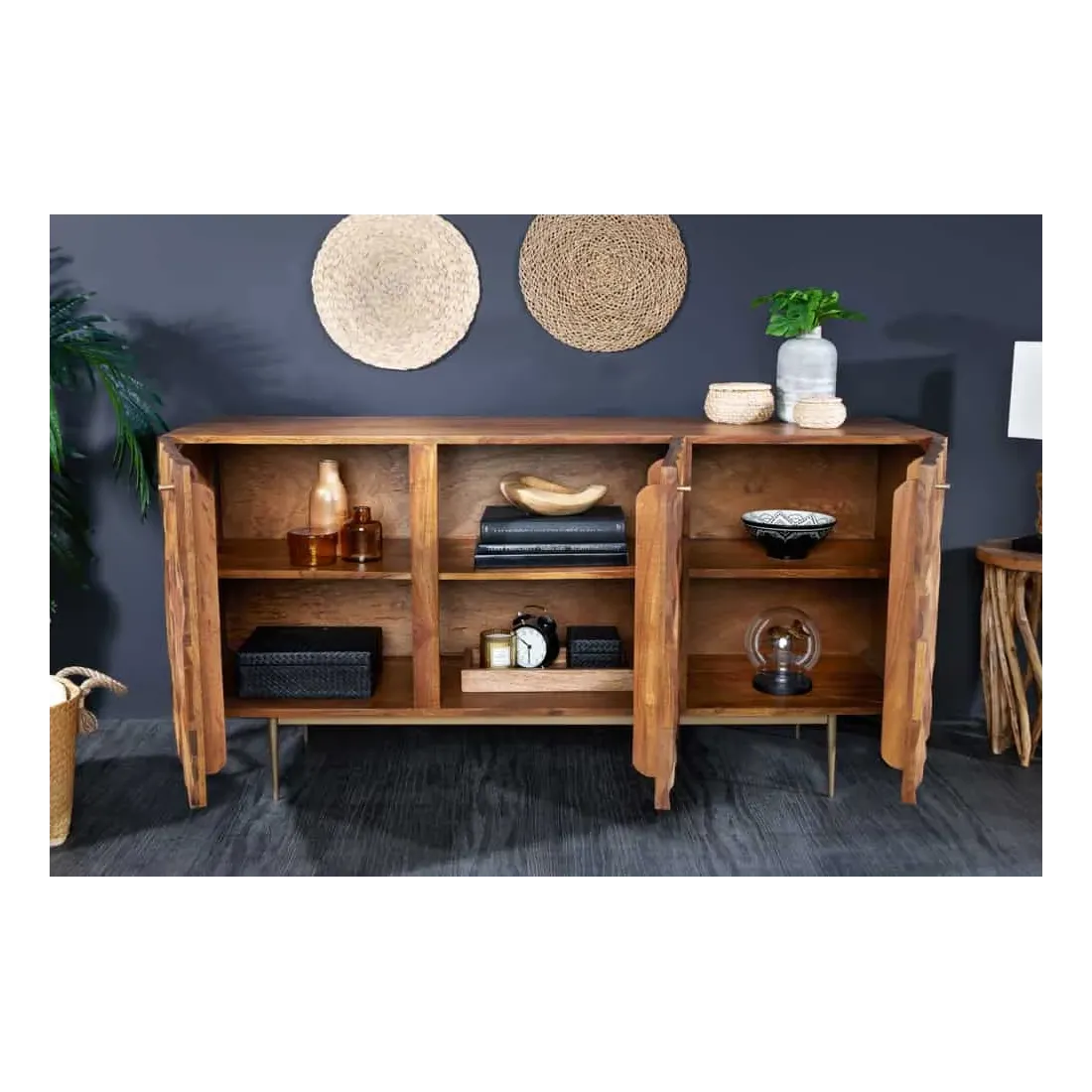 Meuble TV en bois massif de Sheesham (Palissandre) naturel 160 cm – design 3D artisanal...