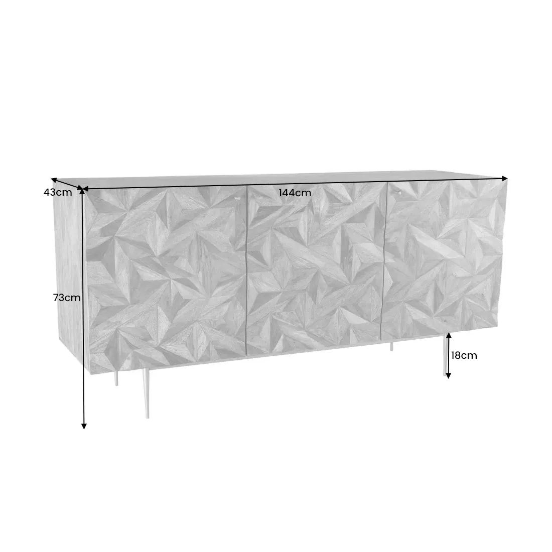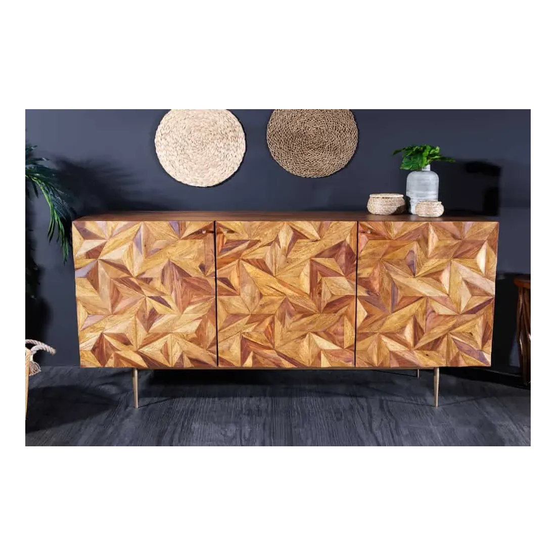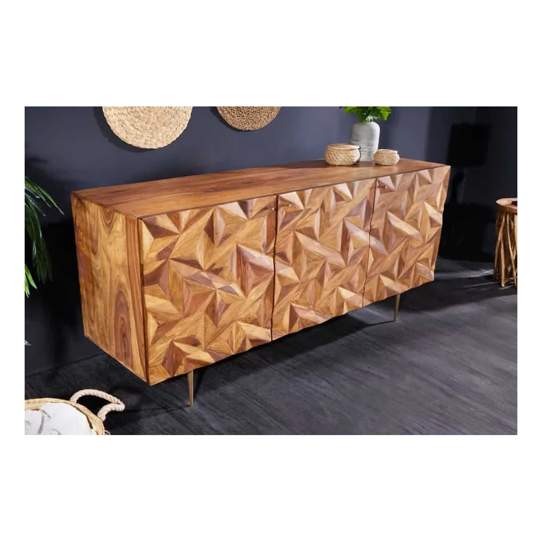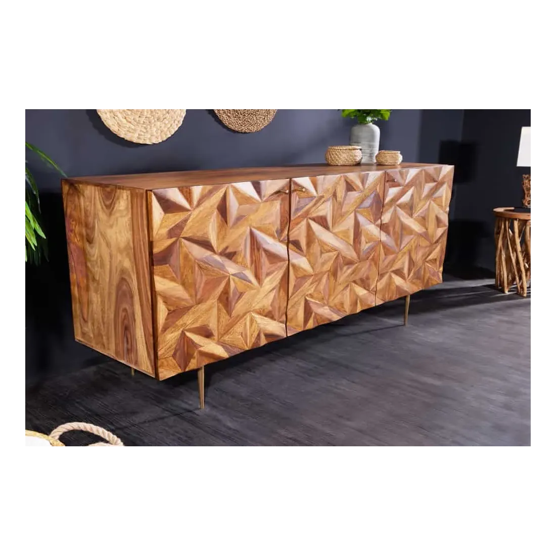 Buffet haut en bois massif de Sheesham (Palissandre) naturel 135 cm – design 3D...