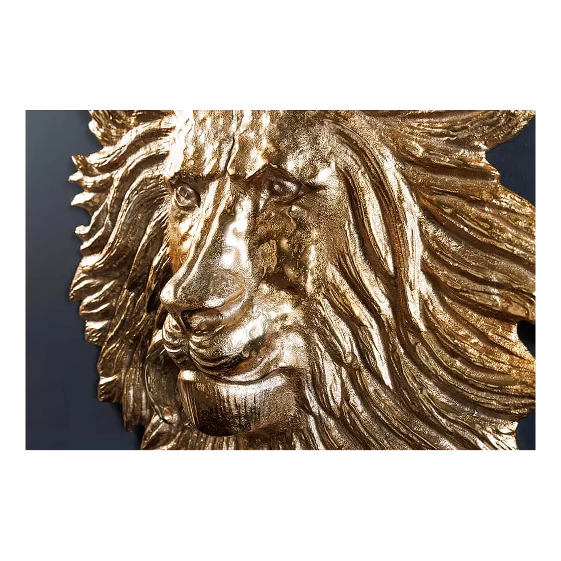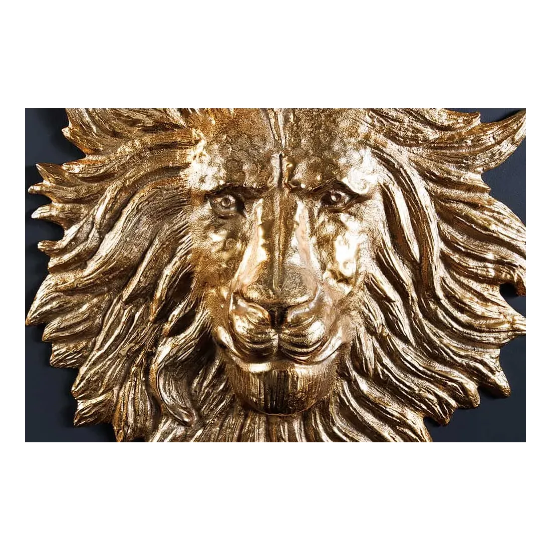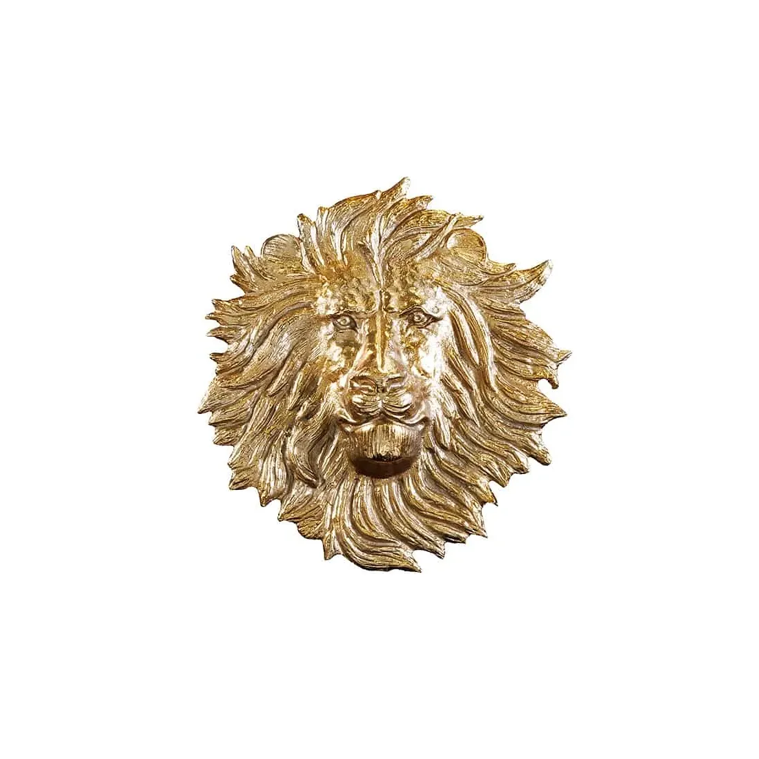 Décoration murale WILDLIFE LION 35 cm – Sculpture tête de lion dorée en métal, handmade