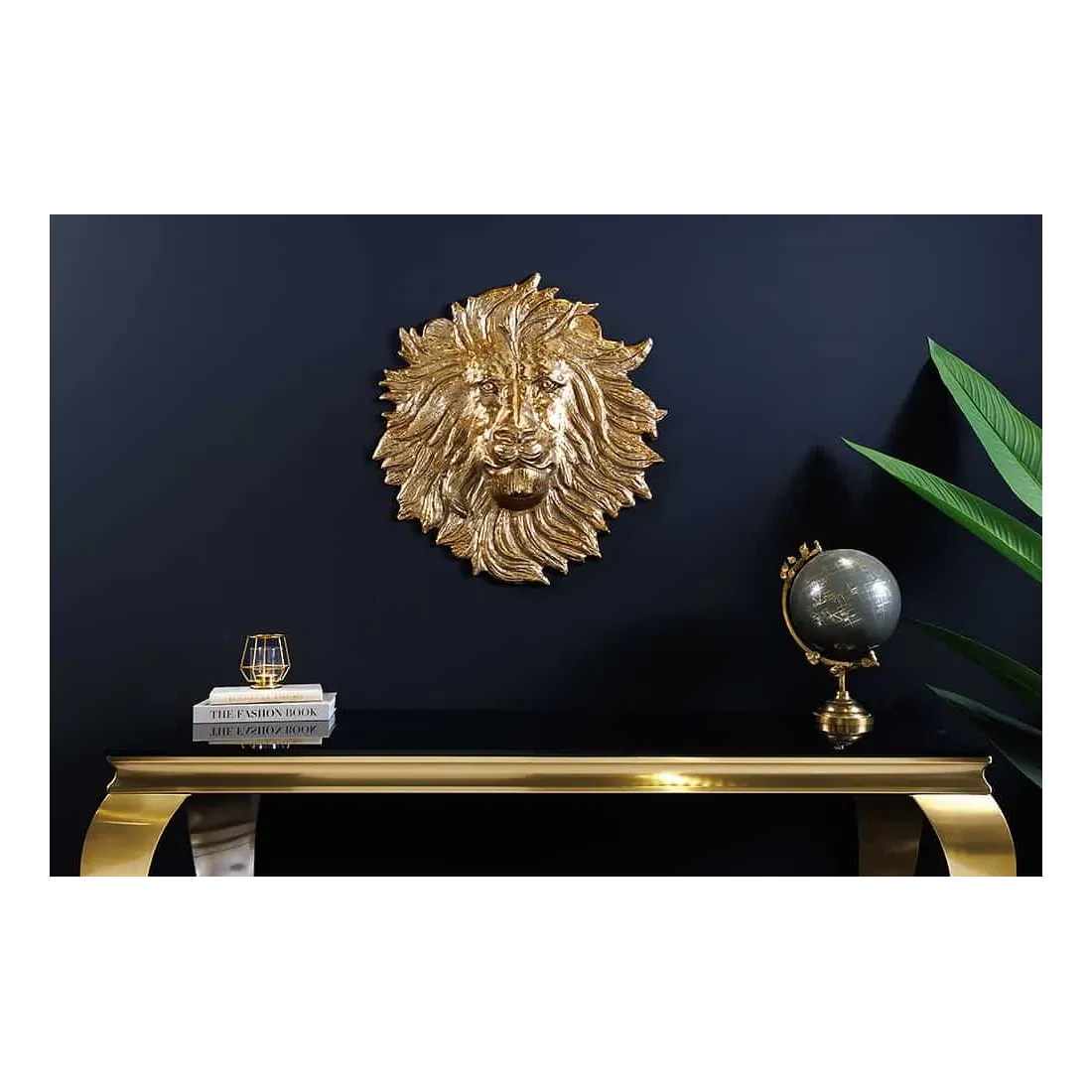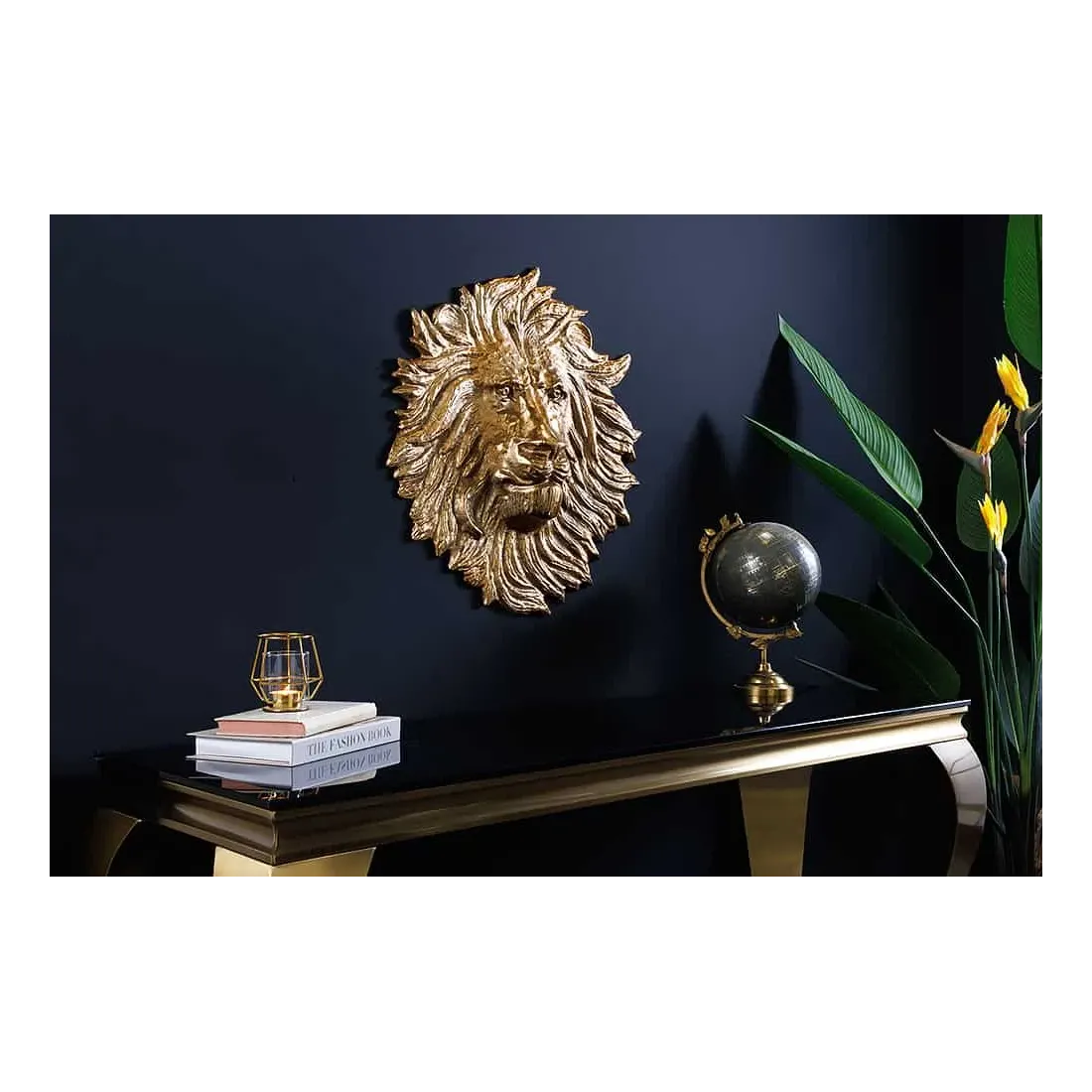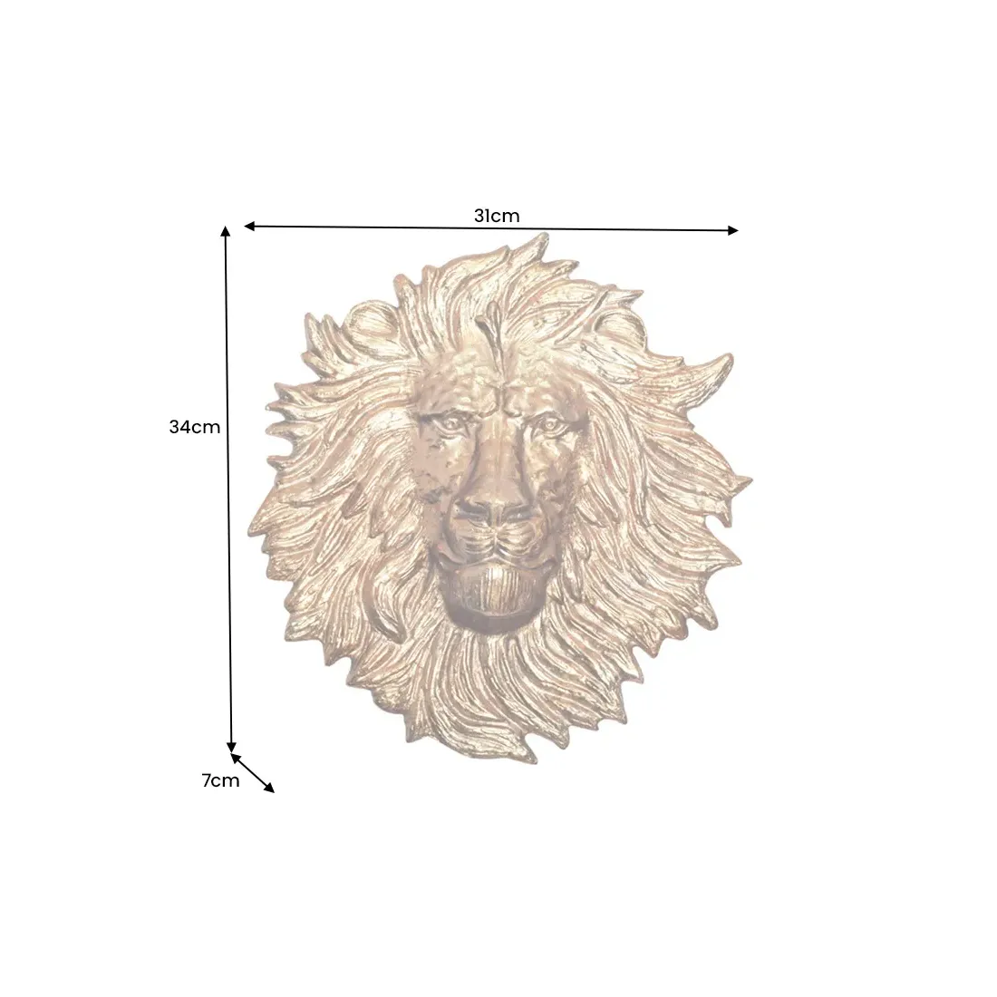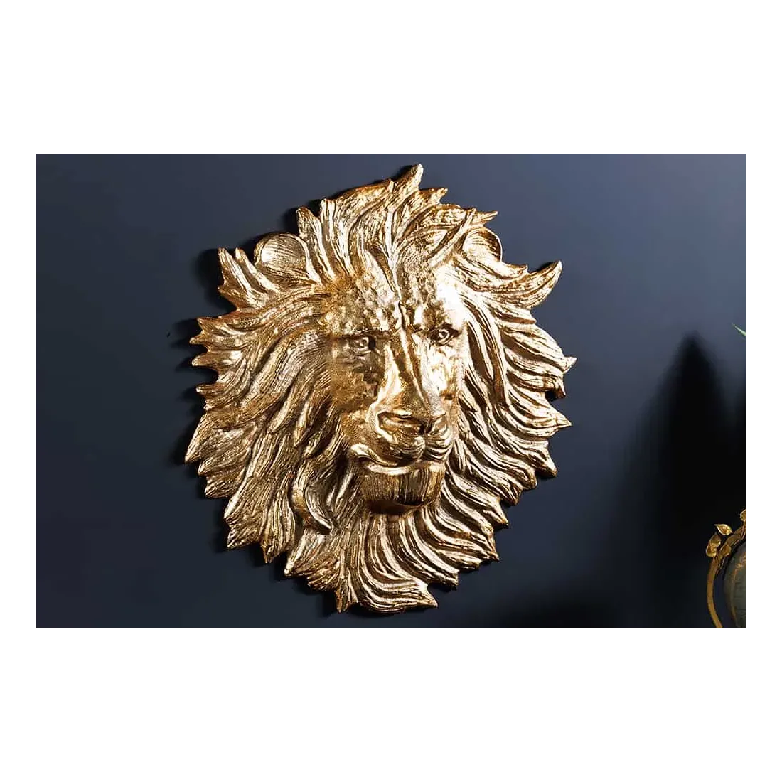 Décoration murale WILDLIFE LION 35 cm – Sculpture tête de lion dorée en métal, handmade