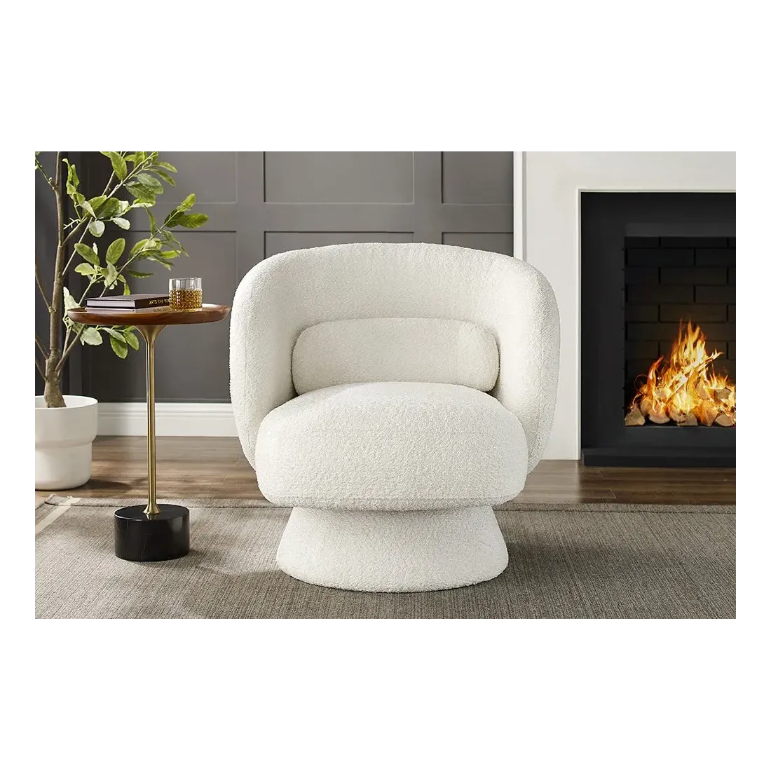 Fauteuil design BOSSA NOVA rotatif 360° – Bouclé blanc moderne et confortable