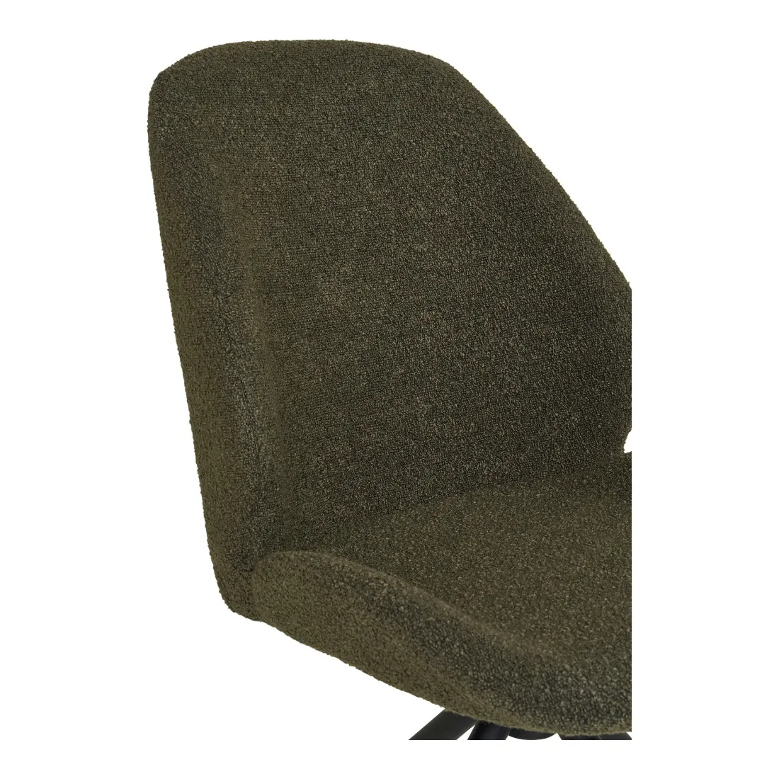 Son revêtement en tissu bouclé vert apporte une touche chaleureuse et actuelle à votre espace repas, tandis que ses pieds en métal noir renforcent son style moderne et assurent une excellente stabilité. L’assise rembourrée en mousse polyuréthane garantit un confort durable, idéal pour une utilisation quotidienne.
