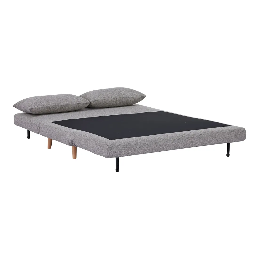 Canapé-lit 2 places gris avec pieds en bois naturel