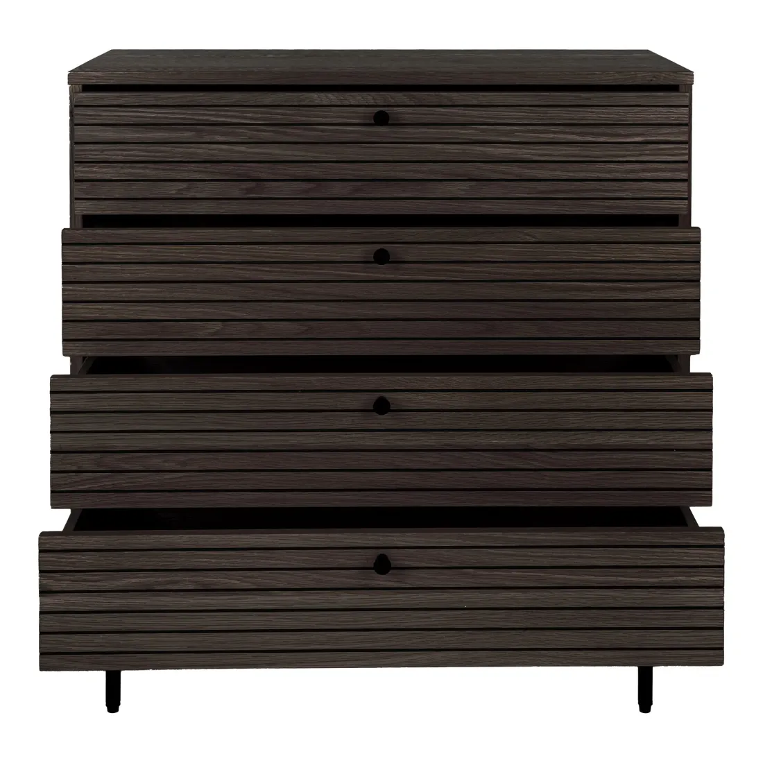 Commode 4 tiroirs en placage chêne fumé – 80 x 40 x 85 cm