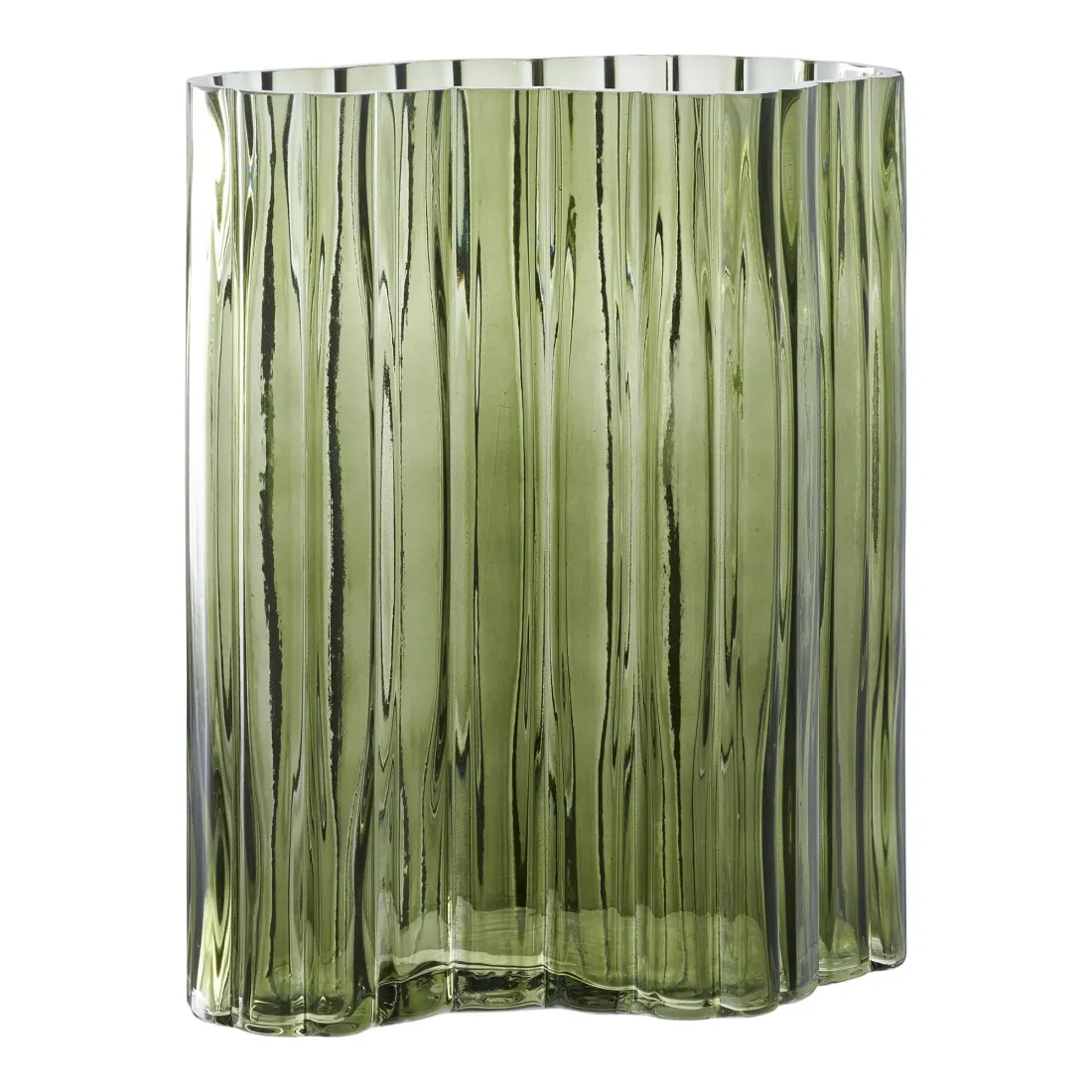 Ce vase décoratif en verre vert fumé apporte une touche sophistiquée et moderne à votre intérieur. Sa teinte subtilement translucide crée de beaux jeux de lumière tout en mettant en valeur les fleurs ou branches qu’il accueille.