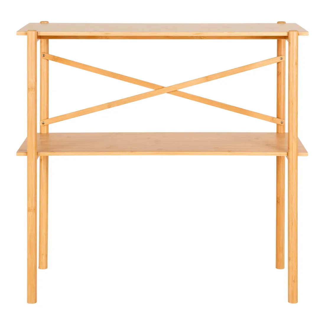 La console en bambou finition naturelle (83 x 32 x 80,5 cm) apporte légèreté et élégance. Idéale pour une entrée ou un salon, elle offre une surface pratique pour exposer objets décoratifs ou paniers de rangement.